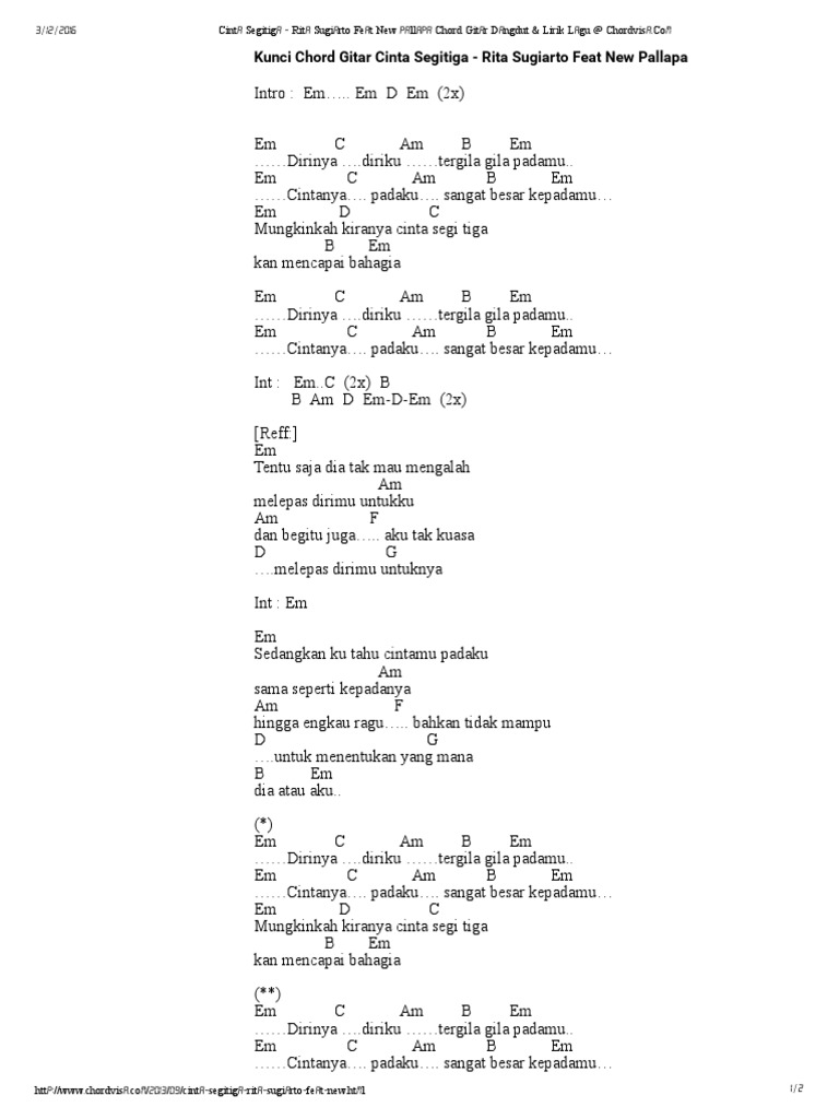 Cinta Segitiga Rita Sugiarto Feat New Pallapa Chord Gitar Dangdut Lirik Lagu At Chordvisa Pdf